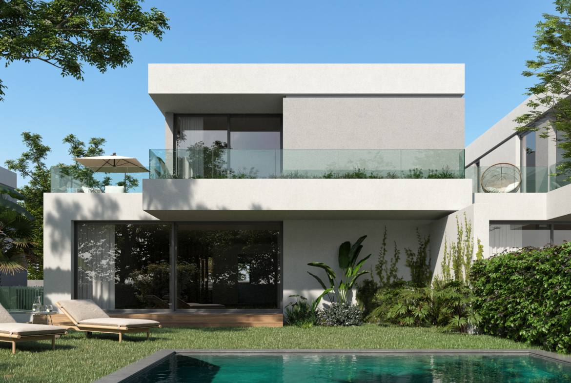 Sprojektuotas prabangos ir komforto atmosferai sukurti. Patogus išplanavimas: rūsyje suplanuots dvi vietos automobiliams ir sandėliavimo patalpa; pirmame aukšte yra svetainė, 1 miegamasis, 1 vonios kambarys ir virtuvė; antrame aukšte yra 3 miegamieji su atskirais vonios kambariais. Lauke mėgausitės erdviu sodu su baseinu ir visišku privatumu, kviečiančiu mėgautis saulėtomis dienomis.